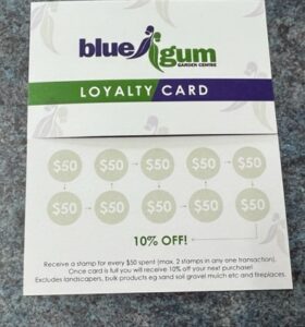 Blue Gum Garden Centre Loyalty Cards are now available